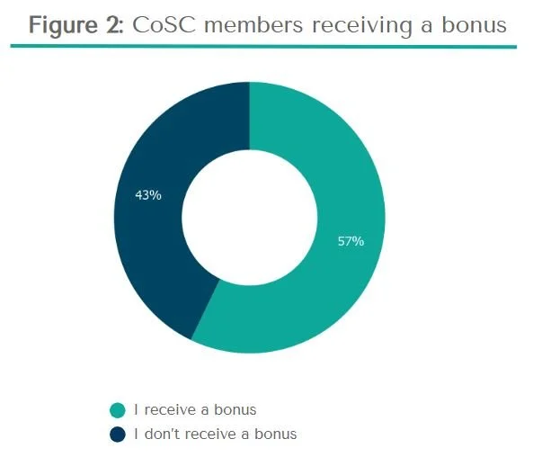 Variable pay has also seen a shift since we first did the survey in 2022. Bonuses are no longer an "added extra" but a core component of the total reward, with 57% of members now receiving an annual bonus - up from just 27% four years ago. These are most common at the Head of Ops and VP/C-suite levels, with the average payout sitting at 16% of base salary.