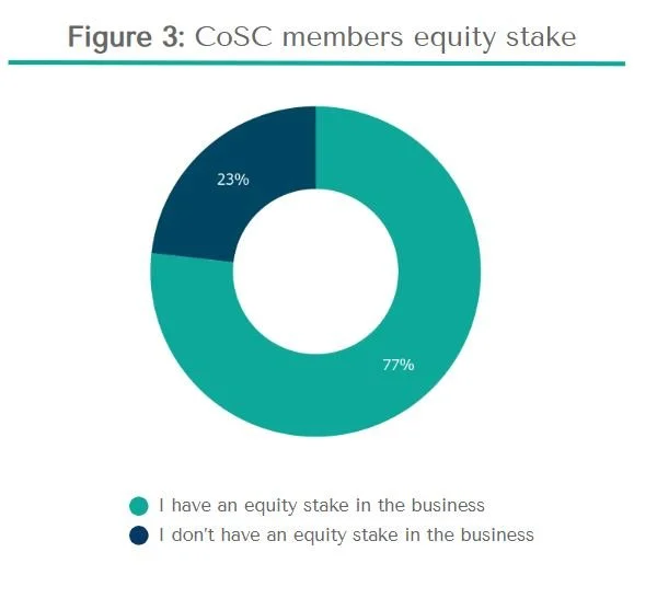 The most striking evolution in 2026 is the surge in equity participation amongst Chiefs of Staff. A record 77% of Chiefs of Staff now hold equity stakes, a sharp increase from the c. 55% reported in 2024 and 2025. While typical stakes range from 0.3% to 1.2%, we have seen individual holdings reach as high as 5%, with some early-stage outliers at 25%. The complexity of these packages is also increasing; members report a sophisticated mix of EMI schemes, RSUs, and growth shares, with valuations often benchmarked at 1.5x to 3x base salary.